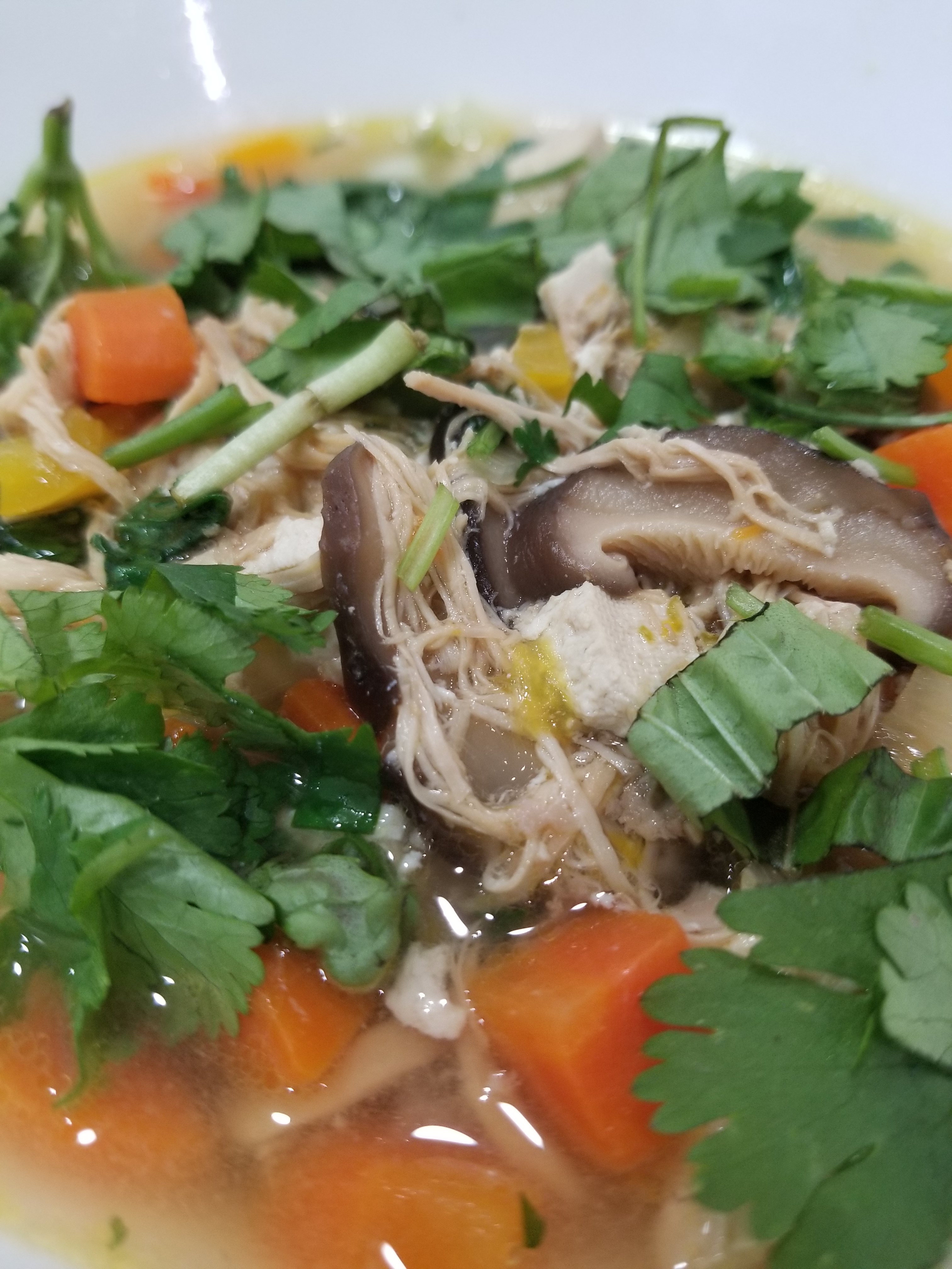 Here is the first recipe of the new year. I wanted to do a recipe that was healthy, fun and easy. I wanted to post something that is totally contrary to what people think eating healthy is this time of year. Many people are countering their weeks of excess with bland, unseasoned poached chicken breast with dry rice and boring veggies. “I’m going to lose the weight for real this time!” they say before giving up by mid-January and maybe February for the slightly more committed. Only to start the cycle over next year. Why not stop the cycle of boring healthy food to start. I decided to pick a recipe from Martha Stewart. This is her version of a Thai dish called Tom Kha Gai. Let’s start the healthy eating cycle with something that feels indulgent. Thai food that reminds you of take out, but this adapted version is much healthier. The original recipe has stats that are a little high in sodium and calories and low in protein and vitamins. When we get to the final recipe, I promise this recipe will help you find that eating healthy does not have to be boring. Here are the original stats: