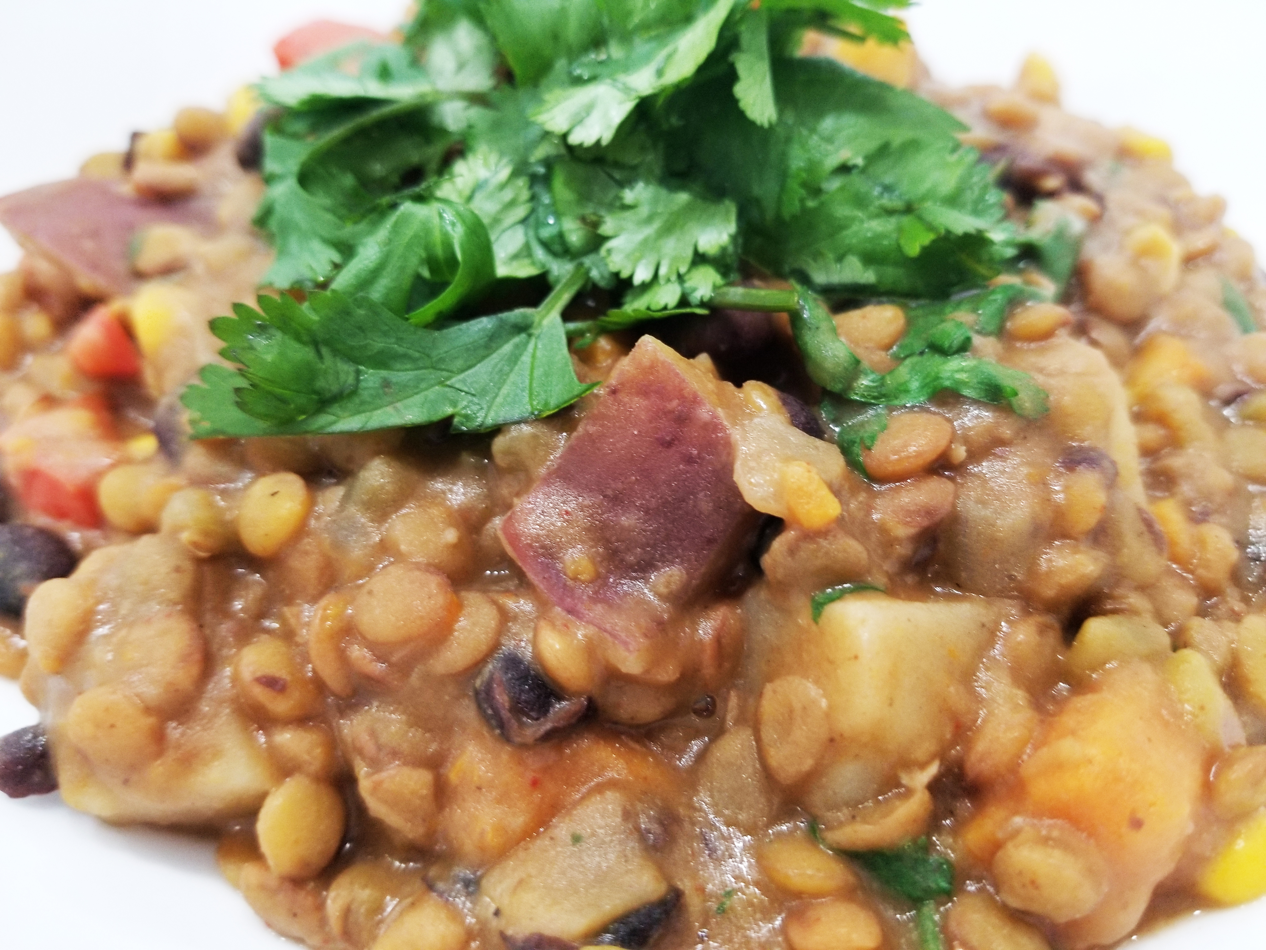 - In a 4-quart Dutch oven melt butter over medium heat. Add onion and sweet pepper; cook 5 minutes or until soft, stirring occasionally. Add next 10 ingredients (through cumin). Bring to boiling; reduce heat. Simmer, covered, 10 to 15 minutes or until potatoes and lentils are tender.