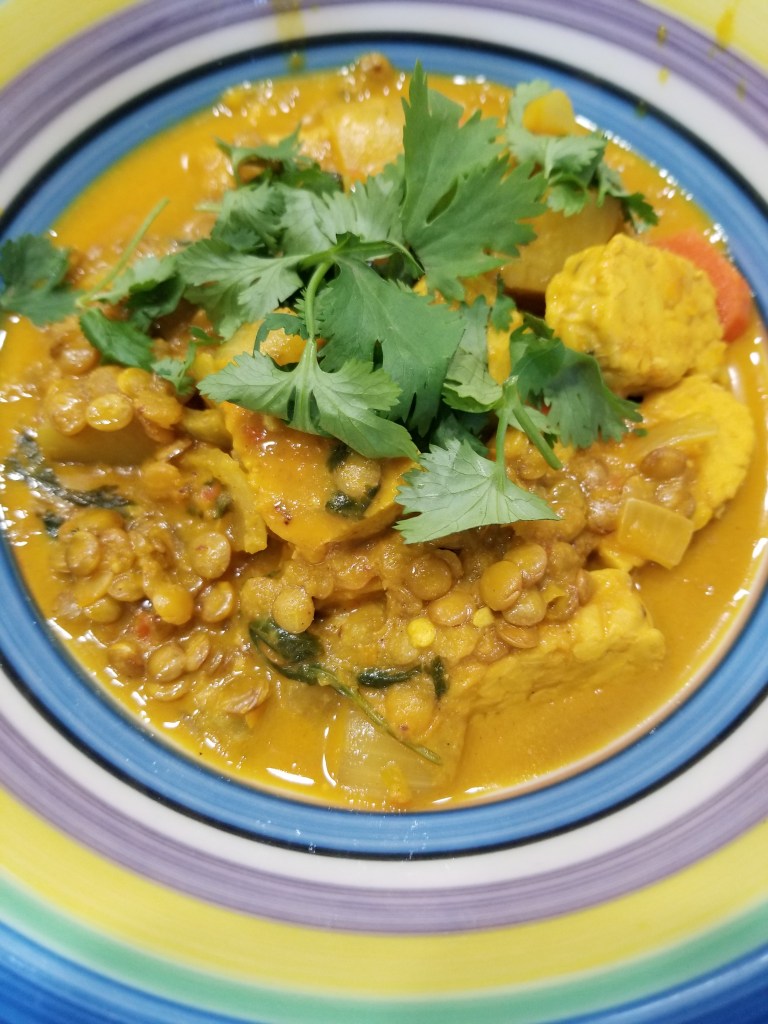 I picked this recipe this week because it was simple and from a cuisine I don’t do very often. I have done a few African recipes, mostly North African. Digaag Quimbe is an East African recipe for coconut yogurt chicken. I found a recipe for this from Bon Appetit. While this is a chicken stew that has tomato, diary and meat, I can make a few slight changes to make tomato, dairy and meat free. I do think this will make a wonderful stew regardless this time of year. It’s getting colder and a warm stew will hit the spot. Another thing I noticed with making a recipe vegetarian is that 20g of protein is hard to hit every time. However, I do hit 15g every time. The protein level is still good, just not as good as animal protein.