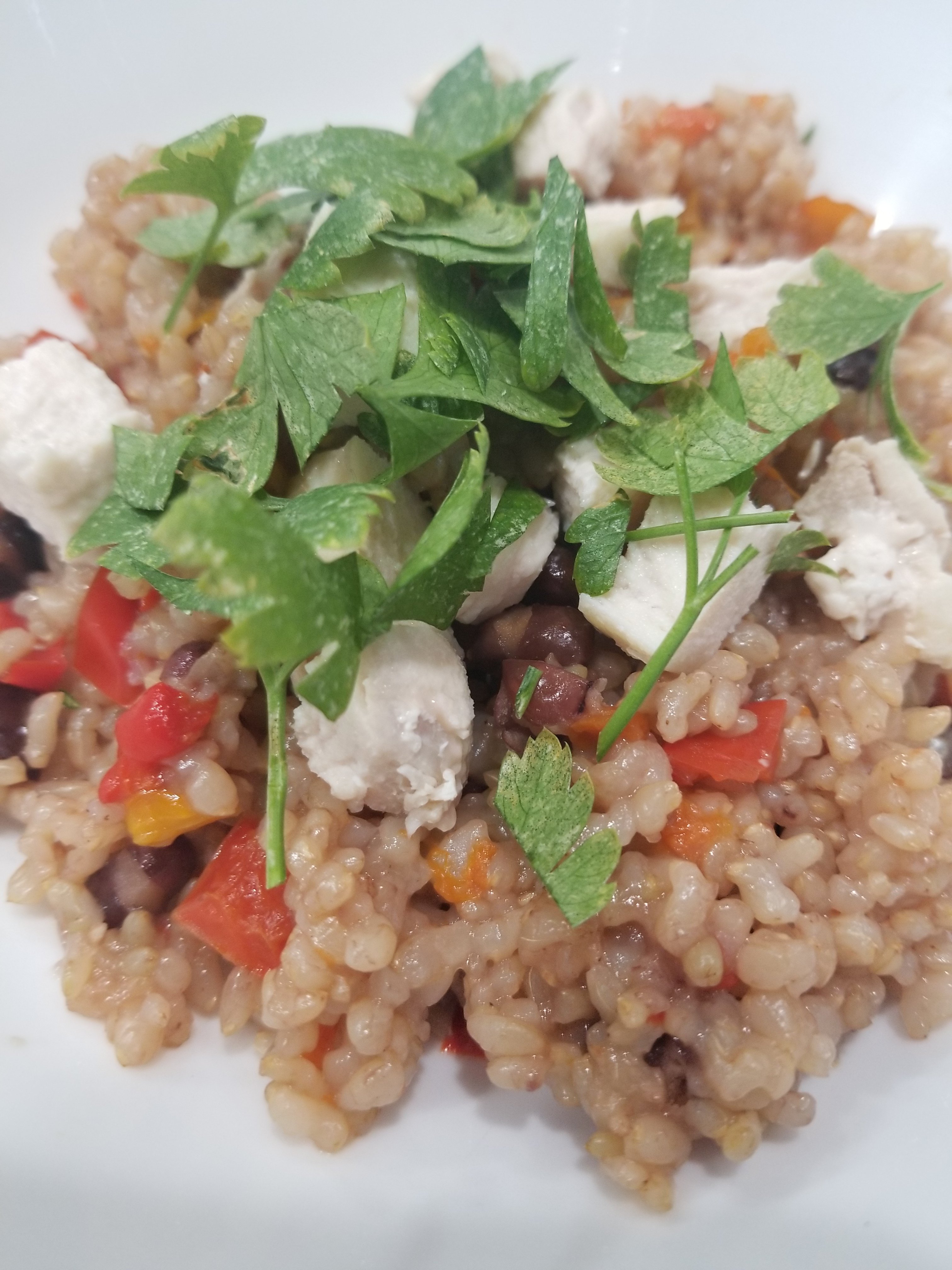 - Add the water, salt, rice and beans. Place the instant on pressure cook and the brown rice setting. Allow for a natural pressure release.