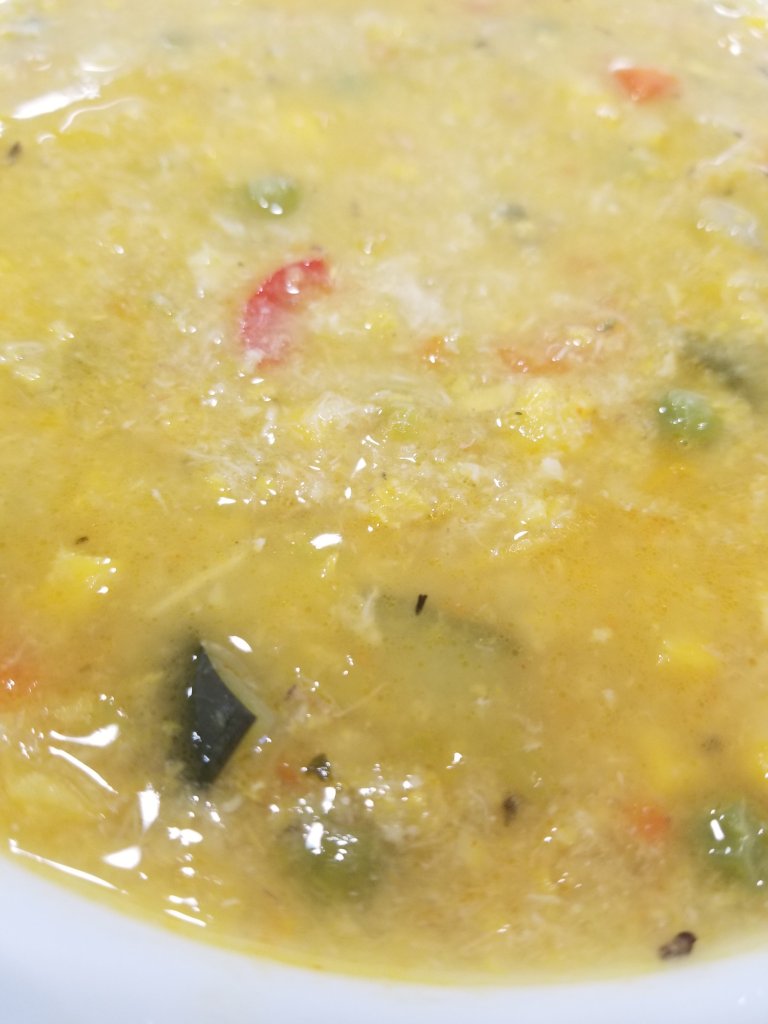 This is a recipe I developed from the fact I had a bunch of chicken bones left over. I do a lot of food prep, including baking chicken breast and pork tenderloin so it is ready to eat throughout the week. Normally I buy boneless skinless breasts, but all they had were bone-in. So I deboned the chicken and saved the bones and chicken scraps and discarded the skin. I hate to see bones go to waste, so I decided to make a flavorful stock and a lovely corn chowder with what I had around the house. I call this “kitchen sink” because I am throwing in what I have on hand.