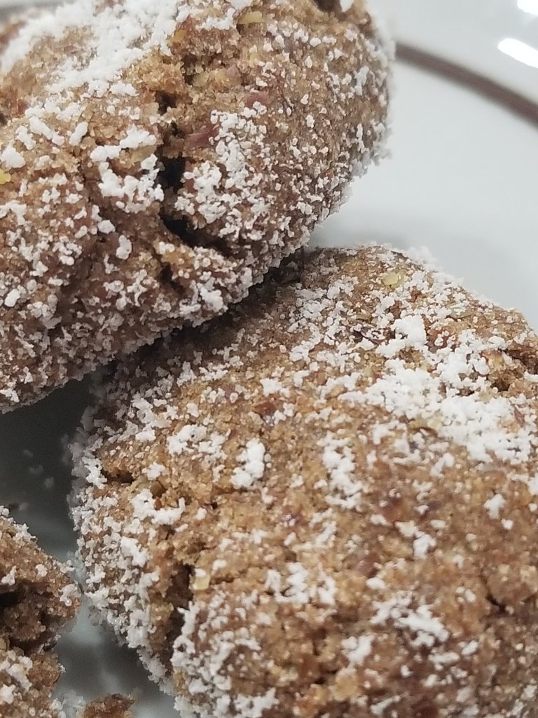 - Roll a two tablespoon portion of dough into a bowl then roll in the granulated sweetener. Place on a baking sheet lined with parchment paper.