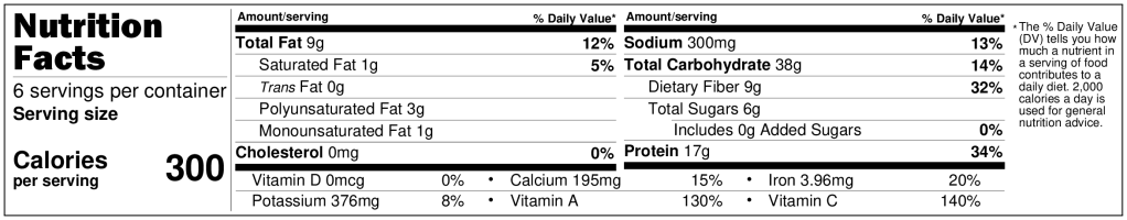 - I increased the servings from 4 to 6 reduce the calories and sodium.