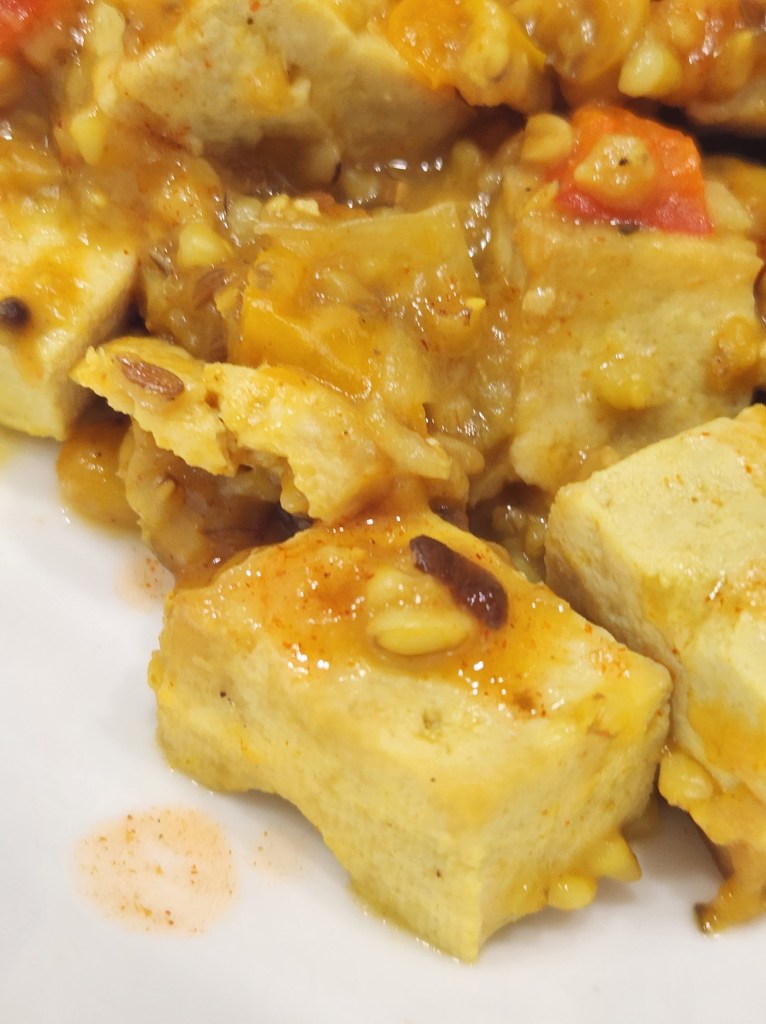 - Add the tofu and brown on all sides