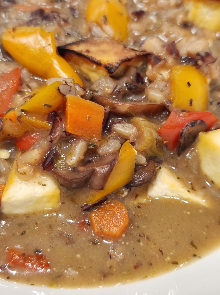 Creamy Vegan Mushroom, Tofu, and Wild Rice Soup
