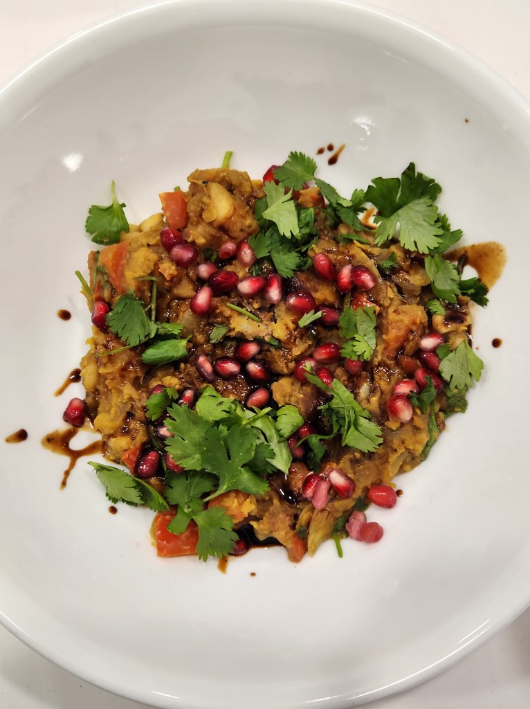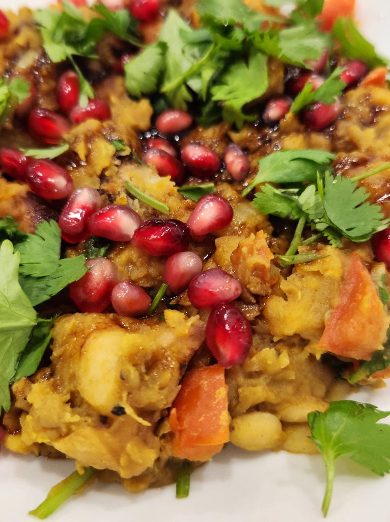 This week’s recipe is one that I found that looked simple and interesting. The recipe for Curry Pomegranate Protein Bowl from Taste of Home has all of the healthy and delicious ingredients I look for in a meal. There is a fair bit of sugar in this recipe, so I am working to reduce that. Most of that comes from the pomegranate molasses. This is a wonderful ingredient that is used a lot in Middle Eastern cooking. A well stocked grocery store will have it. However, if you don’t have that a Middle Eastern grocery or online will have it as well. I love the ingredient but use it sparingly.