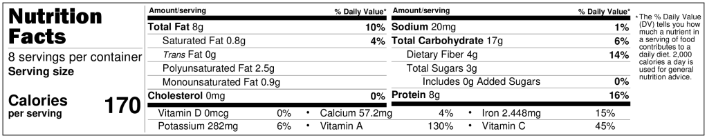 - 1/4 cup hemp hearts (not on the list, but in the same family)