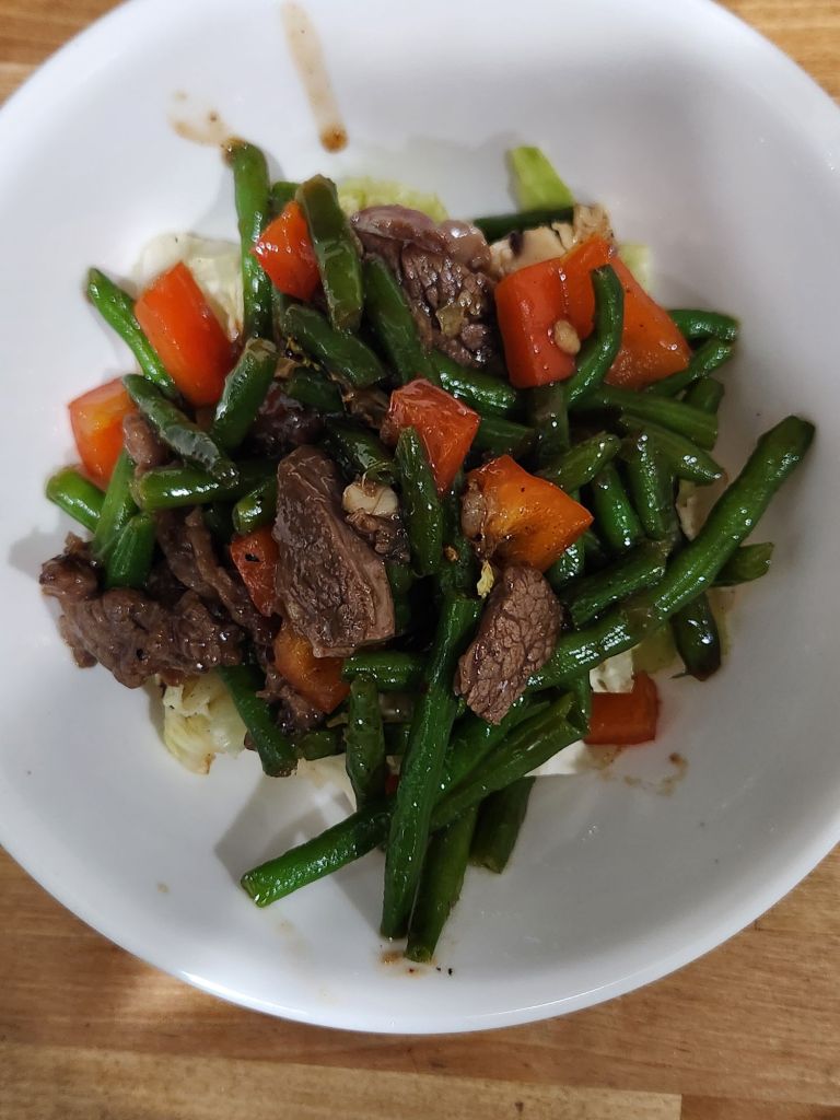 - I added cabbage and green beans for a low carb alternative to rice to bulk out the dish.