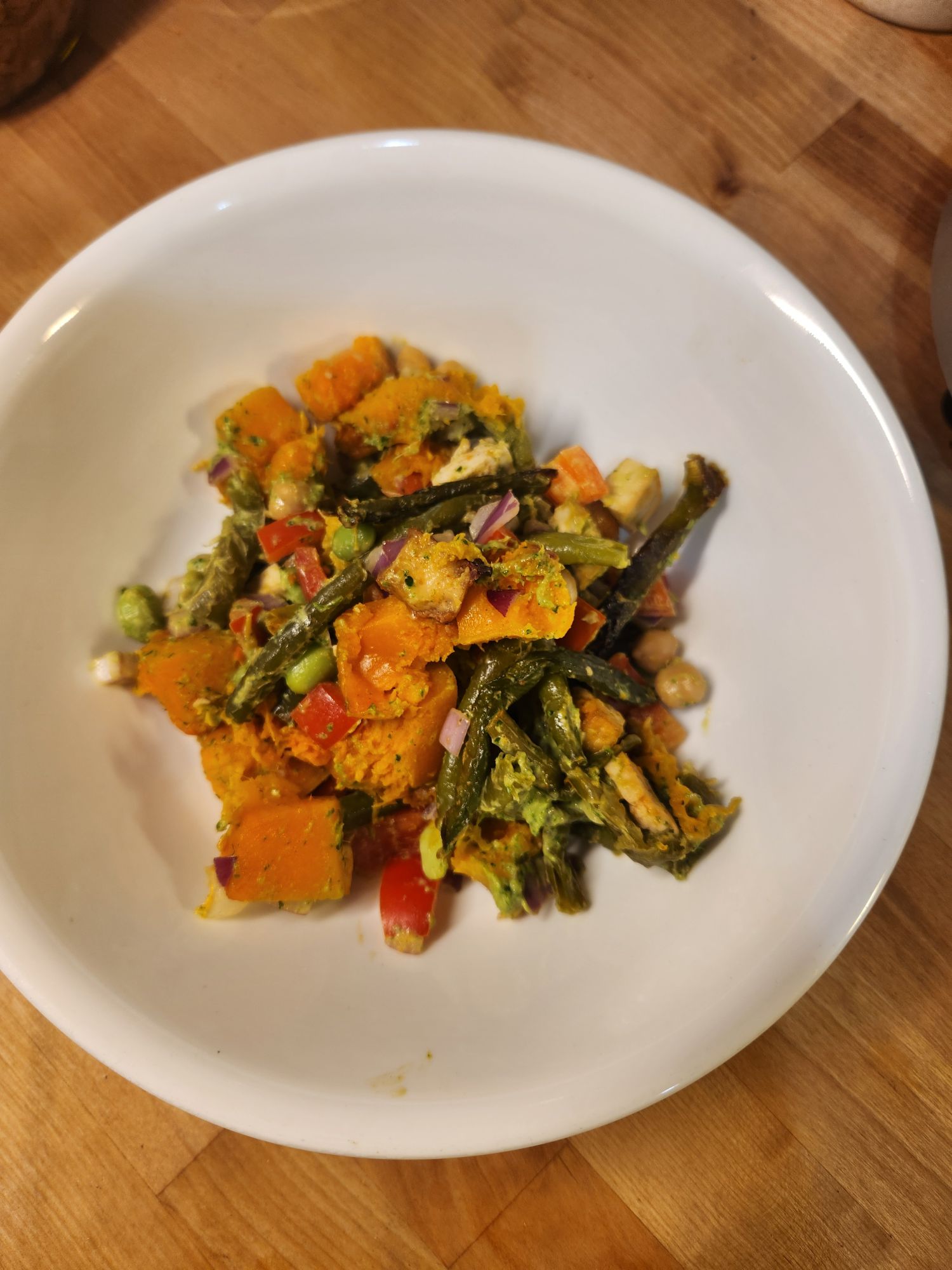 Butternut Squash and Chickpeas in Green Tahini Sauce