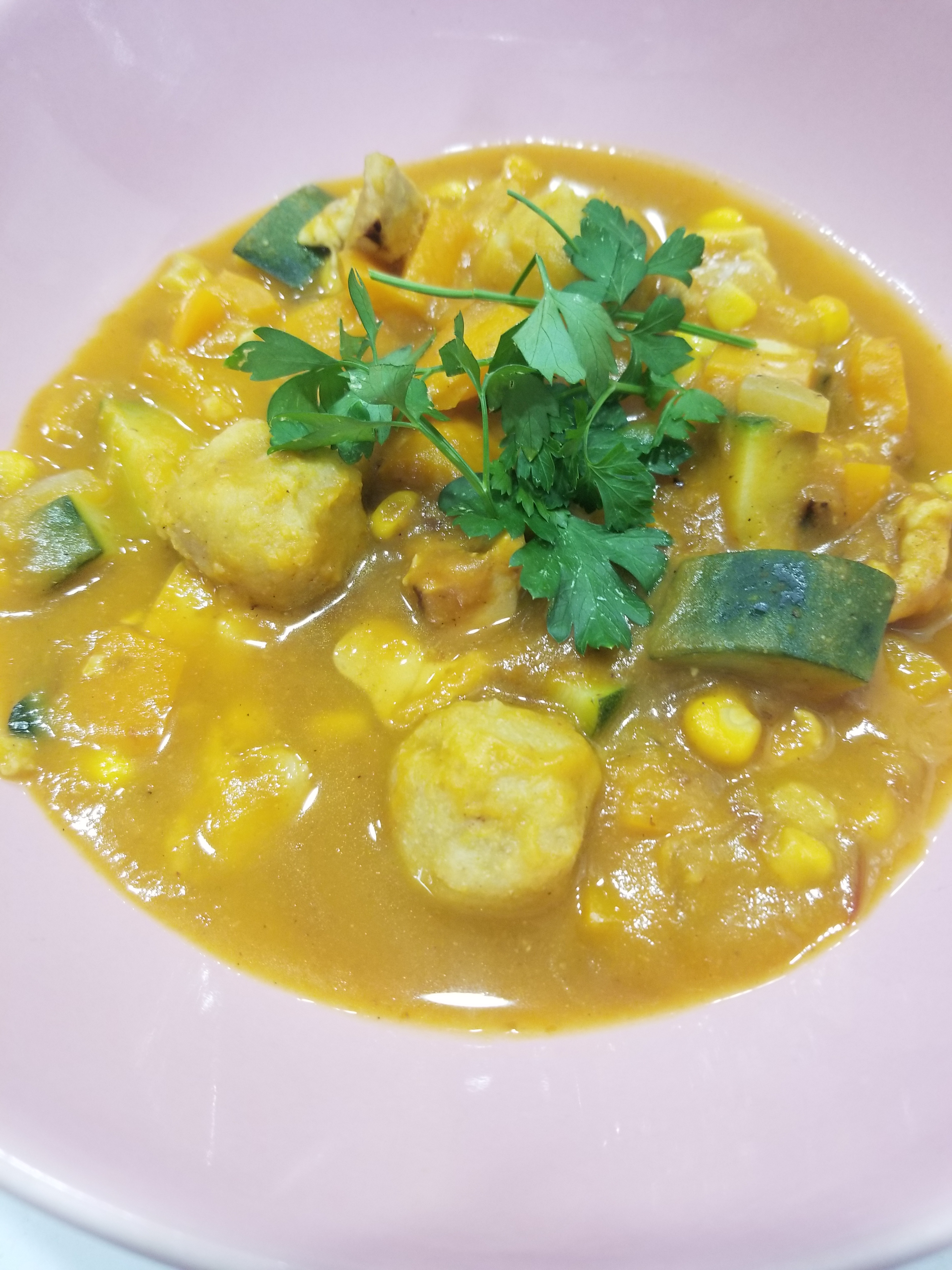 Chicken Breasts with Yellow Mole and Roasted Vegetables