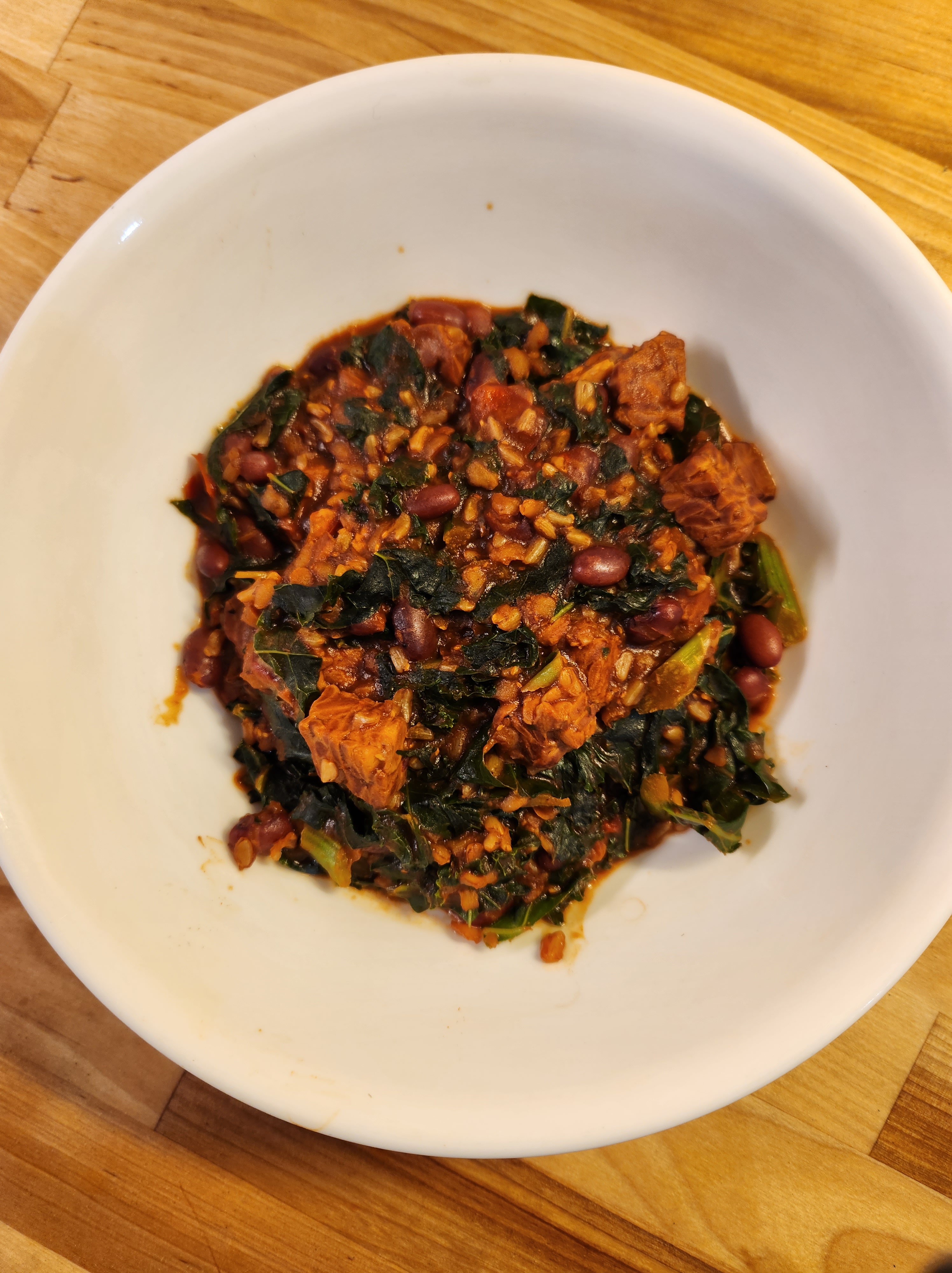 Instant Pot Chili Beans, Tempeh and Greens Burrito Bowl